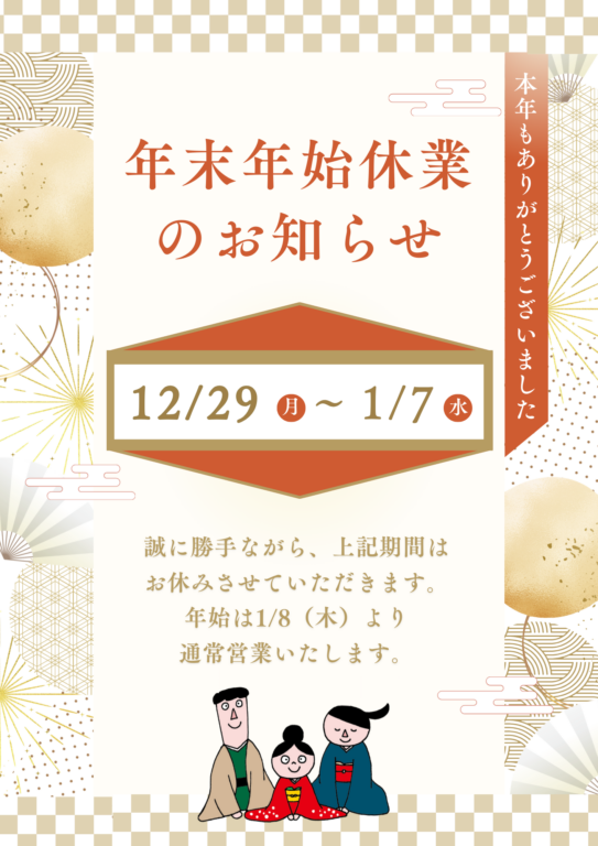 ※2026年1月8日(木)より通常営業いたします。