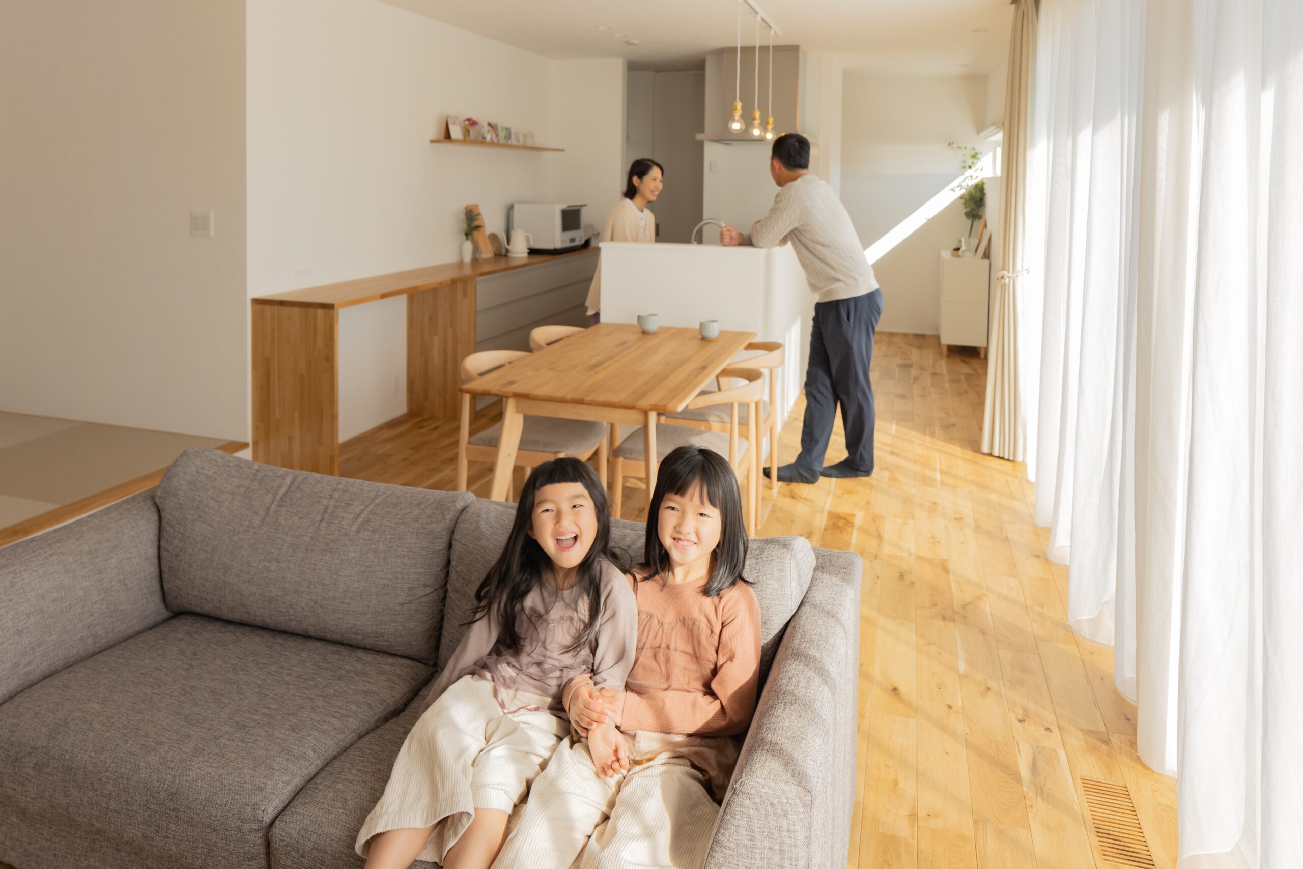 「いつかは家を建てたいと思いながらも漠然としていたんですよね。」とIさん夫婦。長女の小学校入学までの年月を逆算して焦りを感じ始めたある日、「私たちが好きなイメージや価格帯から中立的な立場で住宅会社を絞り込んでくれると思った」と『ans』を訪問。担当スタッフ・西野さんに住まいづくりの疑問や要望を伝えたり、同社が開催している勉強会を受講したりするうちに、自分たちの理想や収入に見合った予算、資金計画などが具体的に見えてきた。「ライフプランニングをしてもらい、住まいづくりのスタートラインに立った気持ちでした。」とご主人。Iさん夫婦がマイホームに求めたのはシンプルなデザインで、これから50年、60年と長く快適に暮らせること。そして気密・断熱性能が高いこと。 これらの要望やさまざまな条件に合わせ、西野さんが住宅会社を5社ピックアップ。その中から2社にしぼり、最終的には土地探しのサポートも依頼でき、HEAT20G2グレード以上の断熱性能を標準とする『バウハウス.』を住まいづくりのパートナーに決めた。「もし『ans』 に行っていなければスタートが遅れていただろうし、『バウハウス.』にもたどり着いていなかったと思います。たくさんの選択肢から西野さんが自分たちに合うものだけを絞り込み、第三者の視点からをアドバイスをくれたことで近道ができました」。