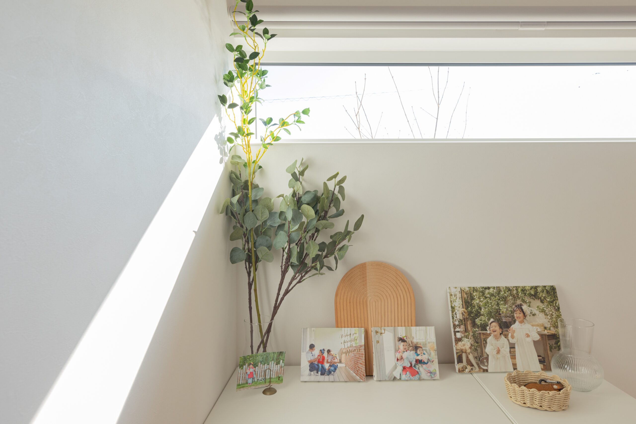 土地探しにも目処がつき、住まいづくりがいよいよ本格化。夜動などもあるご主人は「家は帰ってきて、ゆったりと疲れを癒やす場所。まずはそれがクリアできればOK」と、デザインやプランニングは、ほぼ奥さまに任せていたそう。一方、奥さまはイメージに合う画像を探して住宅会社と共有したり、造作家具の材質や形状にまでこだわってオーダーしたりと、さまざまなプロセスを思い切り満喫した。それから間もなく、「この家の全部が好き」と奥さまが思う自慢のマイホームが完成。もちろんご主人にとっても、どこよりもくつろげる空間になった。住宅会社選びで重要なポイントだった気密・断熱性の高さも毎日実感し、真冬も窓から差し込む光で家中が暖かく、快適そのもの。子どもたちも家で過ごす時間を楽しんで、リビングや和室、そして自分たちの部屋でのびのびと遊んでいるそう。住まいづくりの日々を振り返り「西野さんは何でも相談できる人。住宅会社に対して私たちが直接言いにくいことも間に立ってうまく伝えてくれて、なくてはならない存在でした」と奥さま。 ご主人は「『ans』は女性スタッフが多く、カミさん主導で住まいづくりが進んだ私たちには相談しやすい環境が整っていて、それも良かった」と笑顔を見せる。どこを見ても好きなものだけの愛しの我が家。「心にゆとりを持って丁寧な暮らしをしたいと思うようになりました」。住んでみて改めて、家を建ててよかったと実感している。