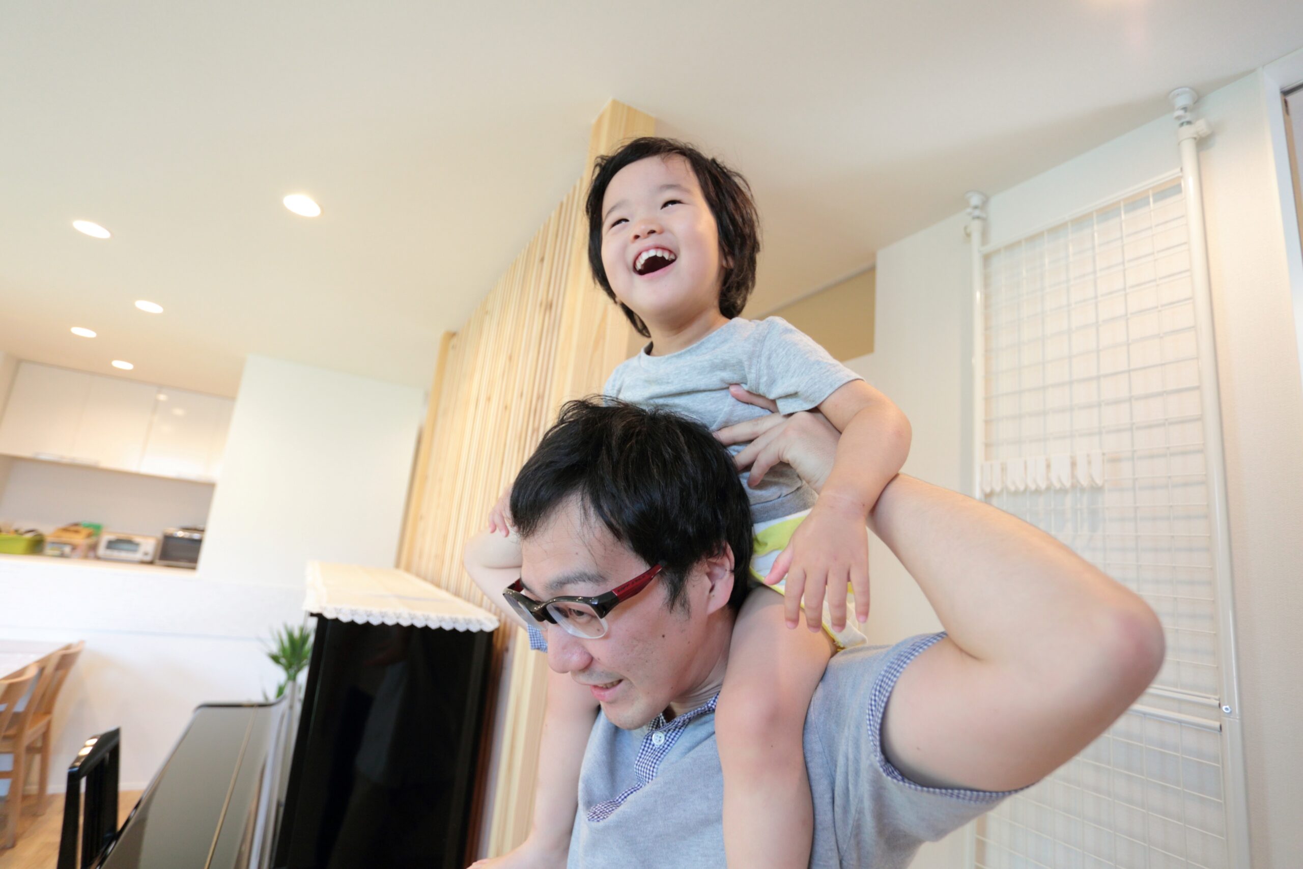 開放感のあるリビングで肩車。