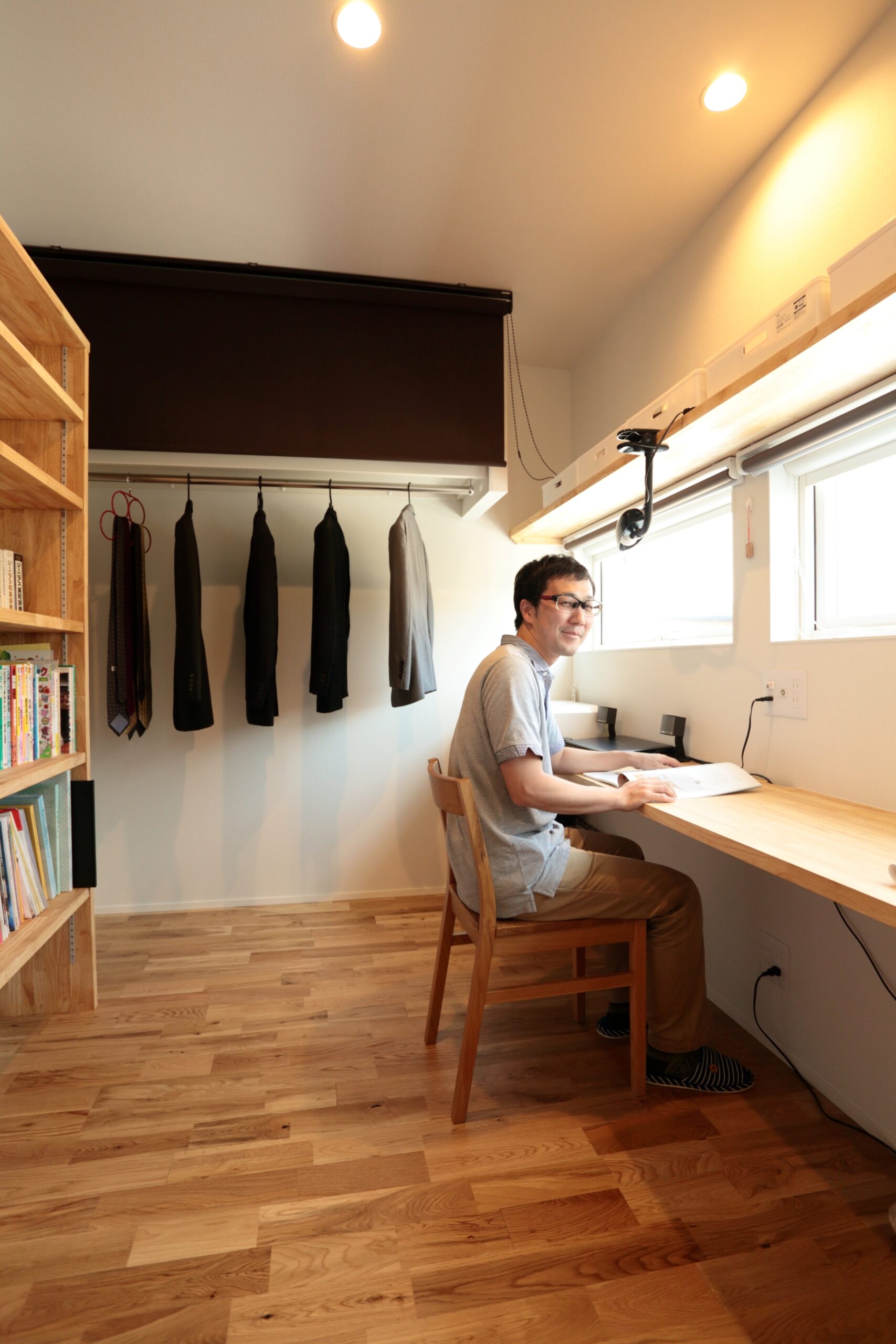 スーツや本など、見せる収納がステキな書斎。