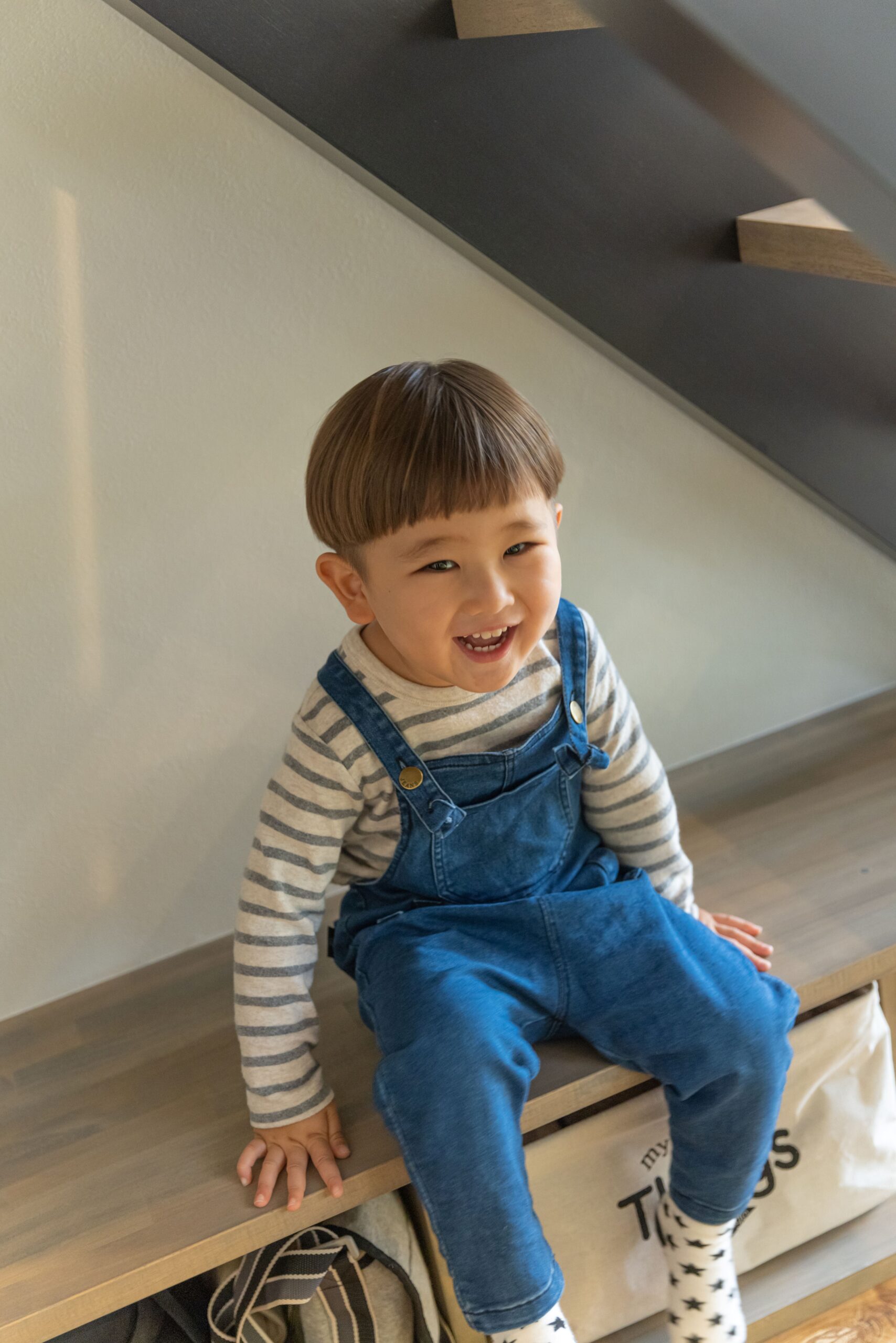 お子さんの隠れ家的スペースになっている階段下の造作収納棚。