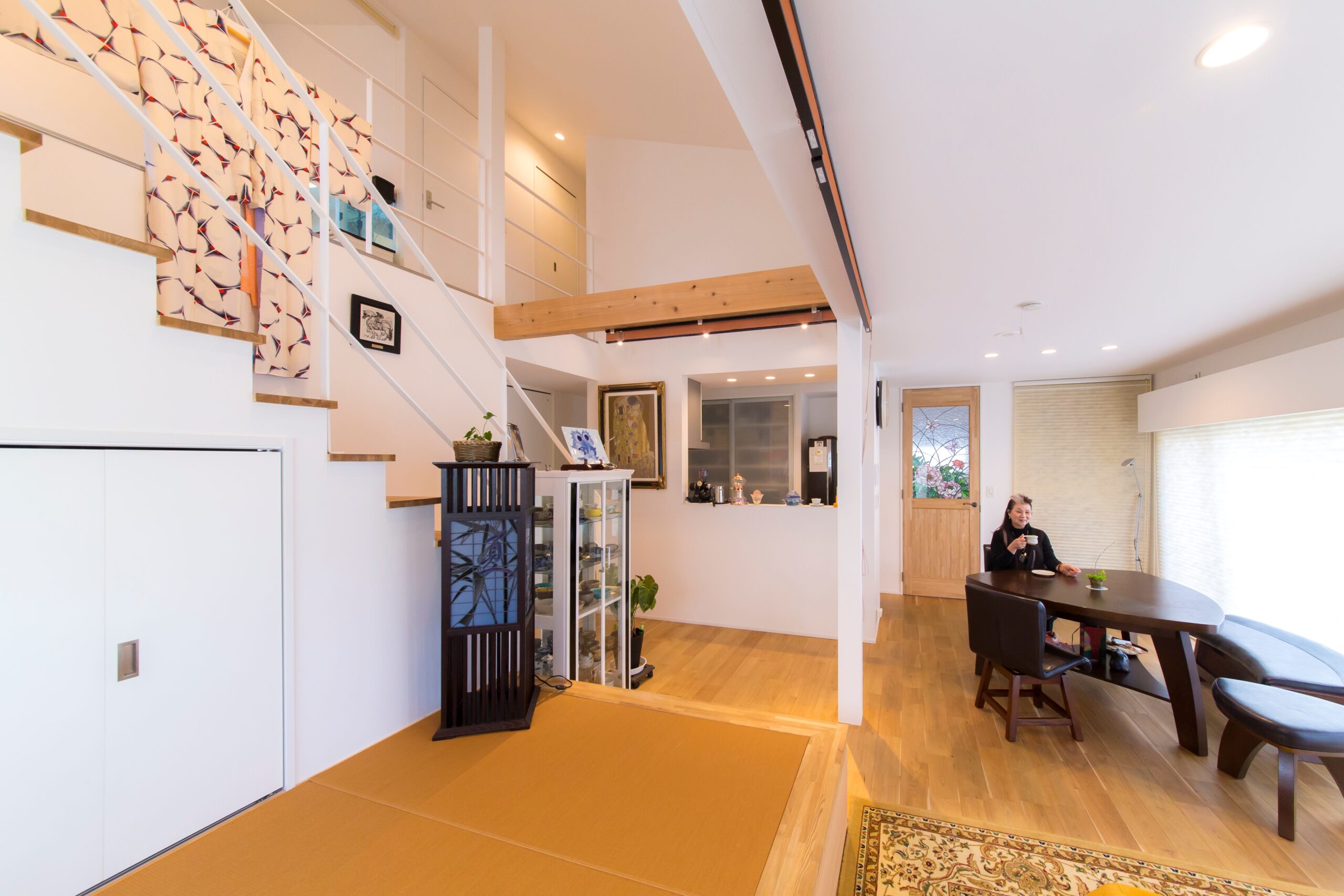 そんな暮らしを優しく包み込む家は、住まいへの希望をしっかり と住宅会社へ伝えたことで叶った。「風水を取り入れた建築にしたい」「間取りはシンプルに」「自作のステンドグラスを取り入れたい」など。ちなみに、玄関ホールとリビ ングをつなぐ扉には、Nさんお手製のステンドグラスがはめ込まれている。「他にも2ヶ所、設置スペースを作ってもらっています。作品は現在制作中。できあがったら家の印象が変わると思いますよ。私も楽しみ」。まだまだNさんと住いの物語は、始まったばかりだ。